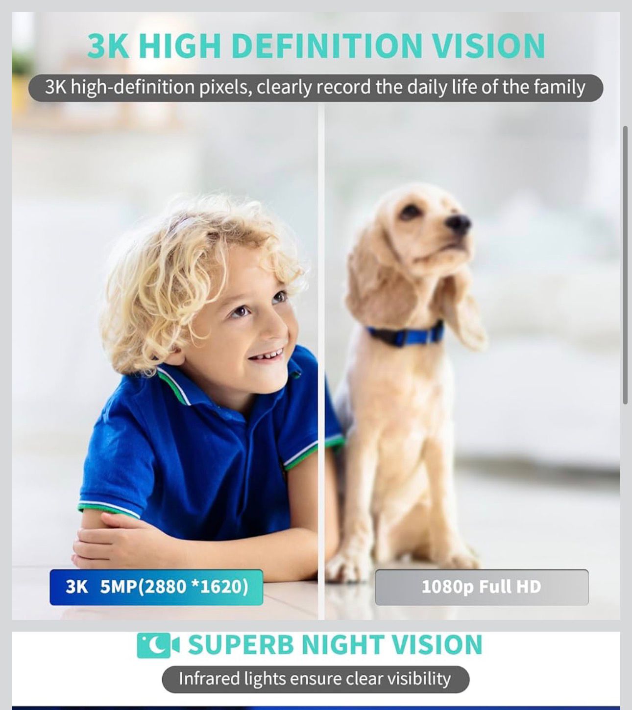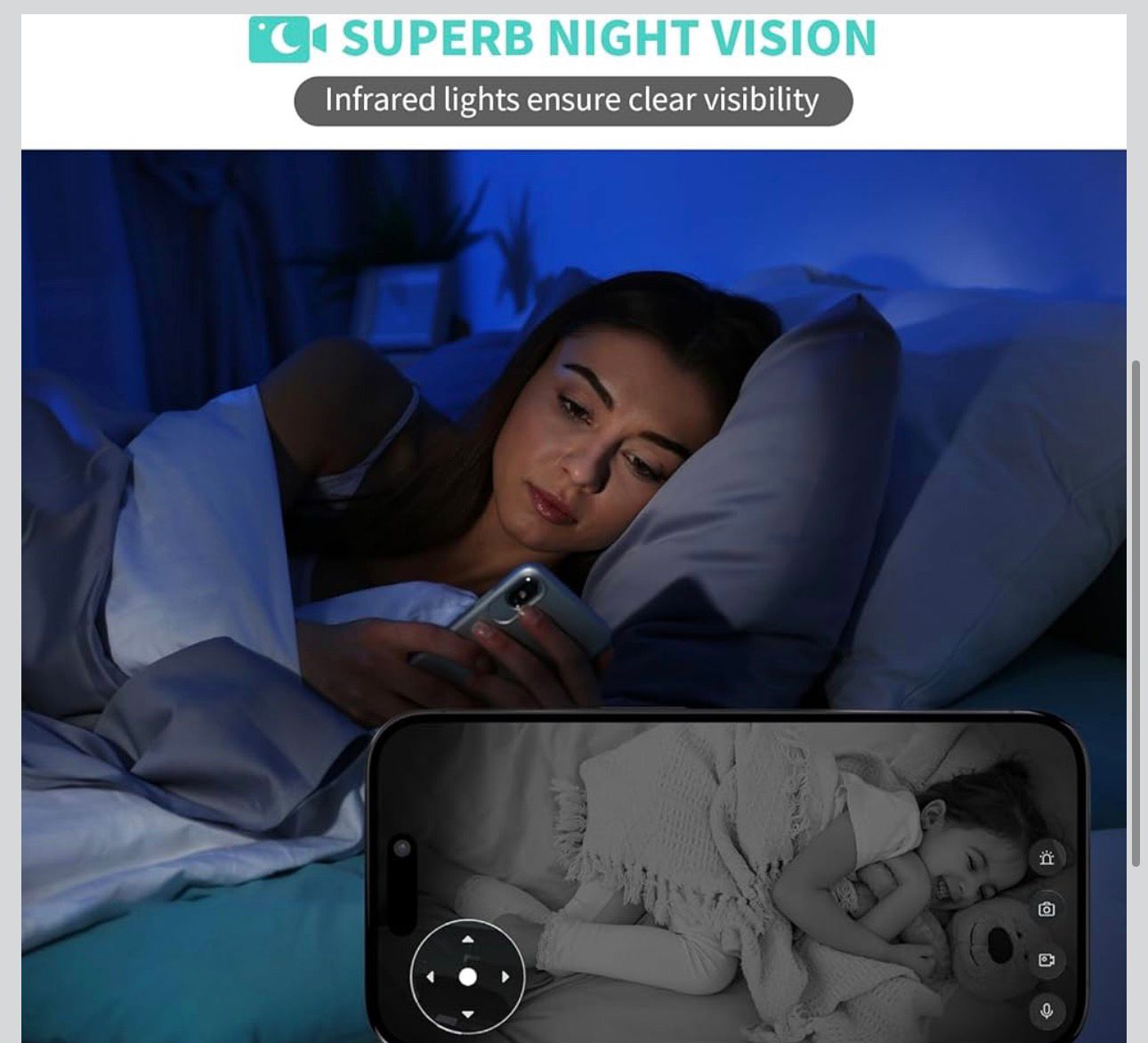 - Visión clara en HD 3K y visión nocturna: Experimente imágenes fieles a la vida con esta cámara de seguridad para interiores en Ultra HD de 2880×1620, revelando detalles precisos día y noche. Los LED infrarrojos garantizan imágenes claras de hasta 30 pies incluso en la oscuridad total, ofreciendo un monitoreo confiable del hogar 24/7