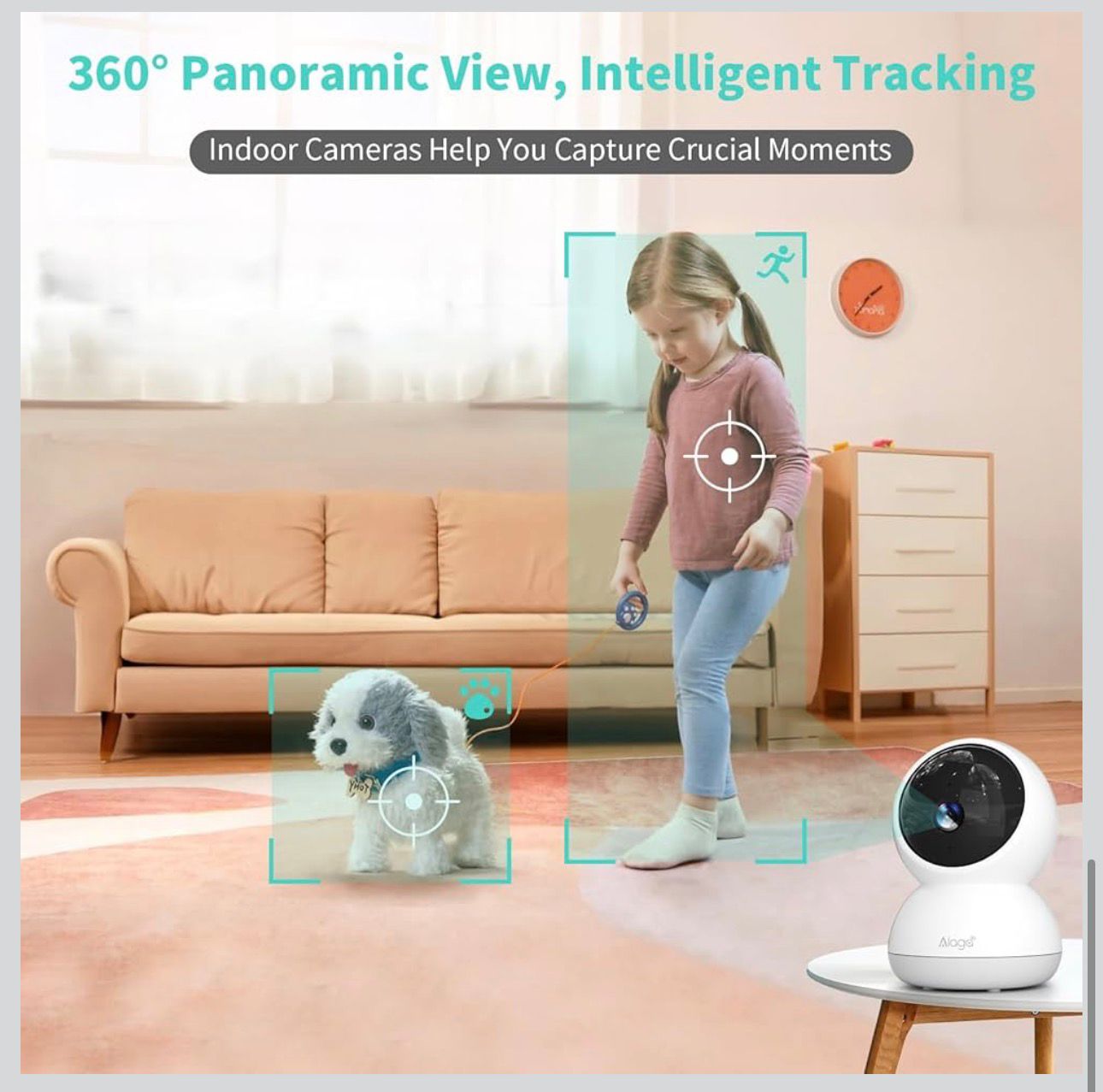 - Detección inteligente de IA y seguimiento de movimiento: Manténgase informado al instante La IA inteligente distingue con precisión a las personas, las mascotas y el movimiento general (cámara ideal para mascotas). Reciba notificaciones telefónicas inmediatas al ser detectado. La cámara rastrea activamente el movimiento, proporcionando una conciencia crucial para una seguridad mejorada, además de funcionar como un monitor de bebé capaz